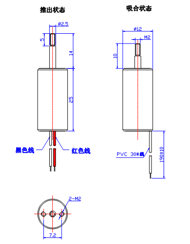 雙向保持式電磁鐵KS1225S是磁心科技研發生產的一款小型保持式電磁鐵,產品直徑只有12MM,高度25MM可以在有限的空間內實現推力、拉力、保持力三項功能,產品體積小、功能