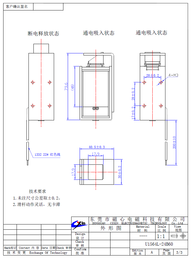 U1564推拉式電磁鐵其它參數(shù):